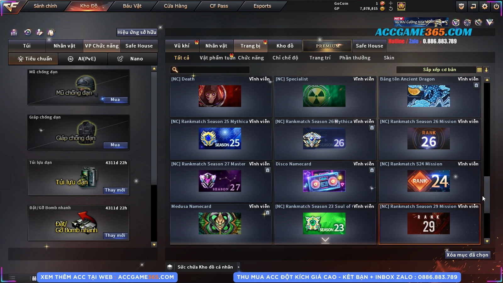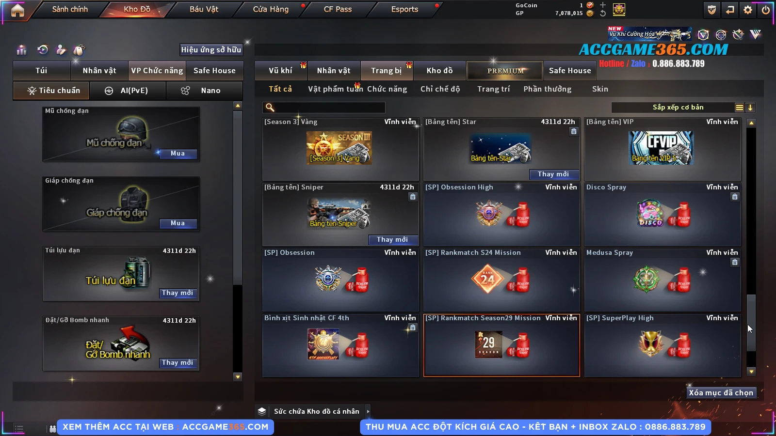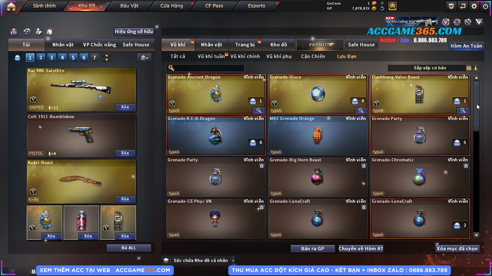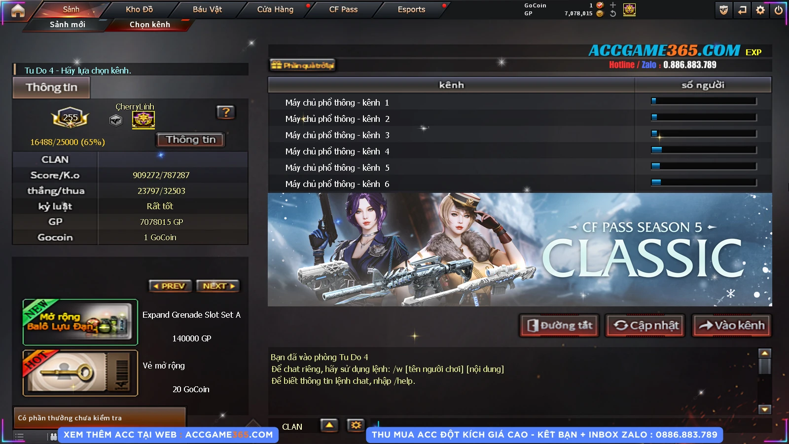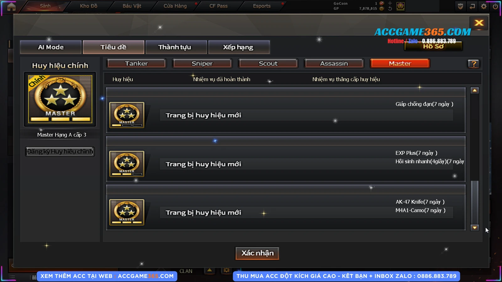 Thu mua acc cf giá tốt, liên hệ zalo 0886 883 789