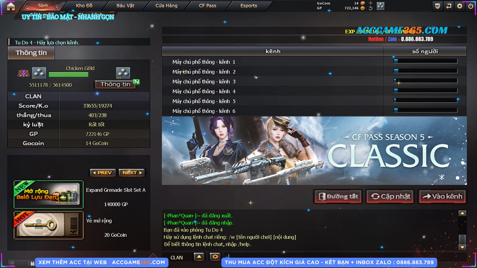 Thu mua acc cf giá tốt, liên hệ zalo 0886 883 789