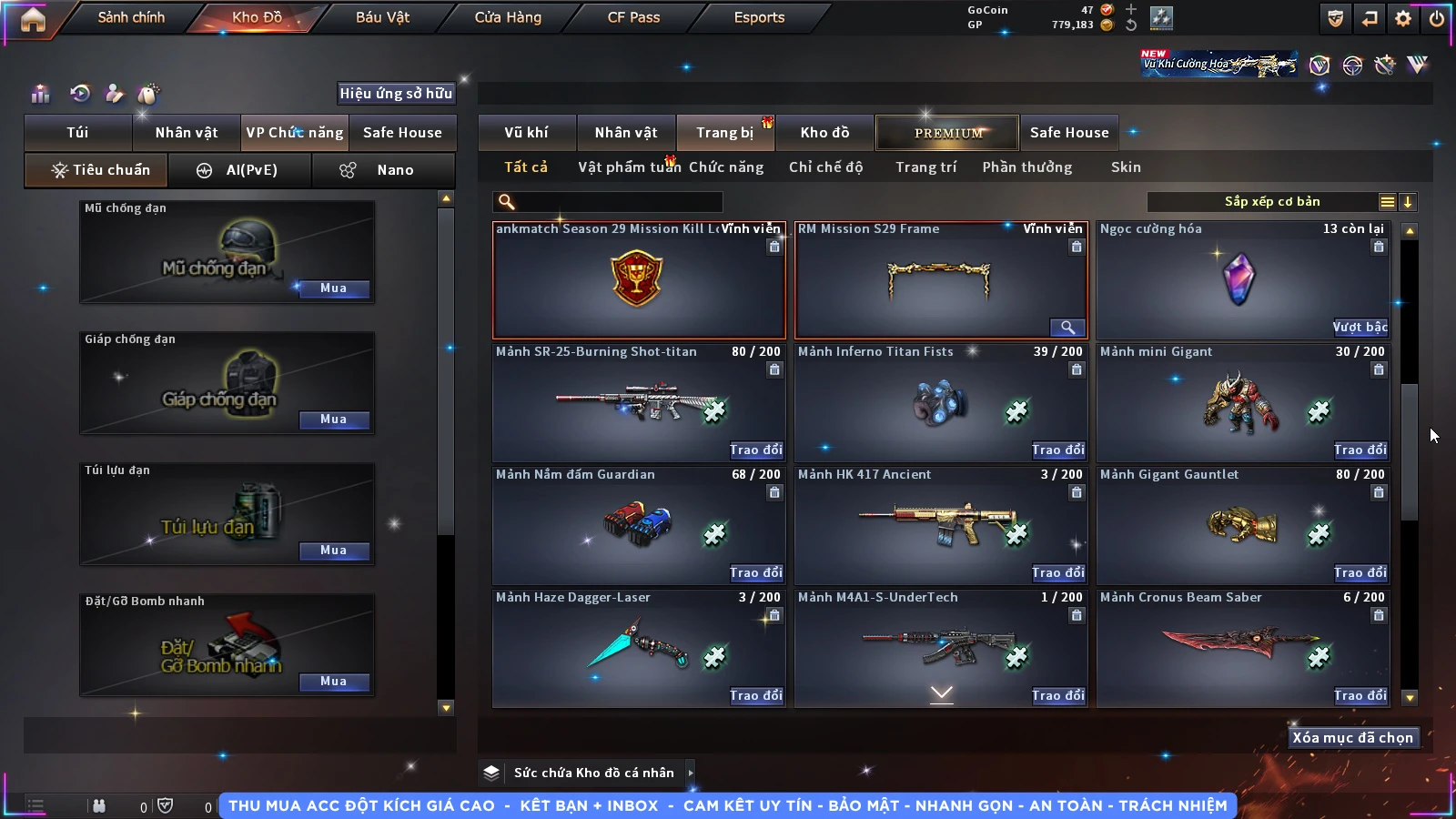 Thu mua acc cf giá tốt, liên hệ zalo 0886 883 789